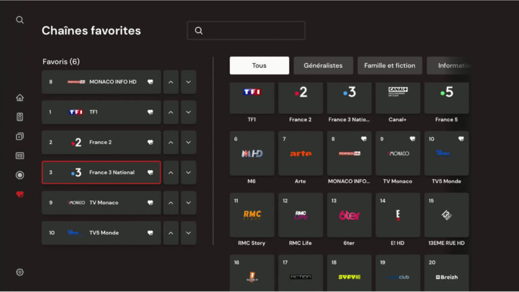 Vous pouvez aussi limiter la liste de chaîne aux chaînes favorites.